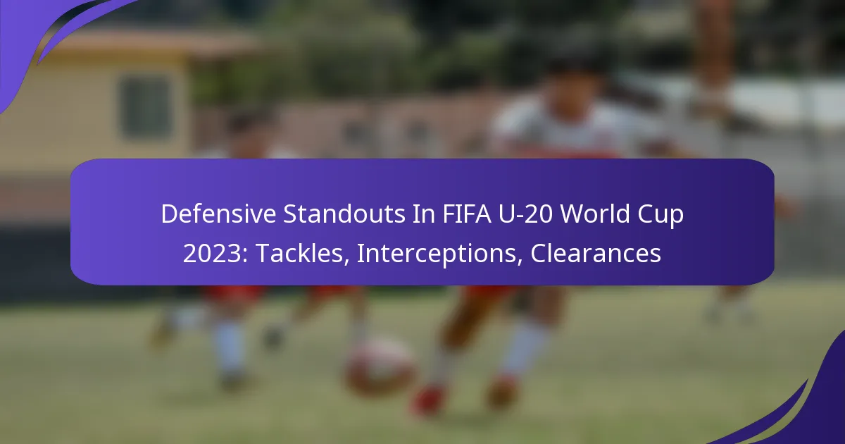 Standout defenders in the FIFA U-20 World Cup 2023 have showcased impressive skills in tackles, interceptions, and clearances, significantly impacting their teams’ defensive capabilities. Analyzing these metrics reveals how individual performances contribute to overall team success in the tournament.